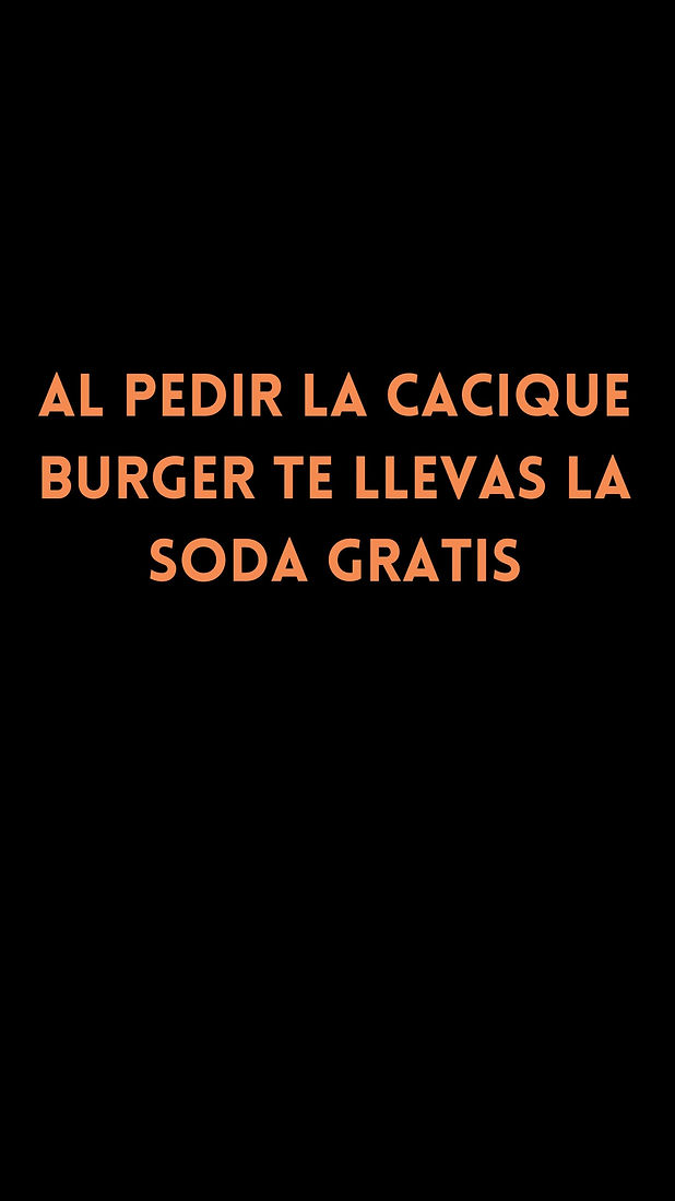 WHEN ORDERING THE CACIQUE BURGER YOU CAN ORDER A FREE SODA BY SAYING THAT YOU ARE COMING FOR THE PROMOTION